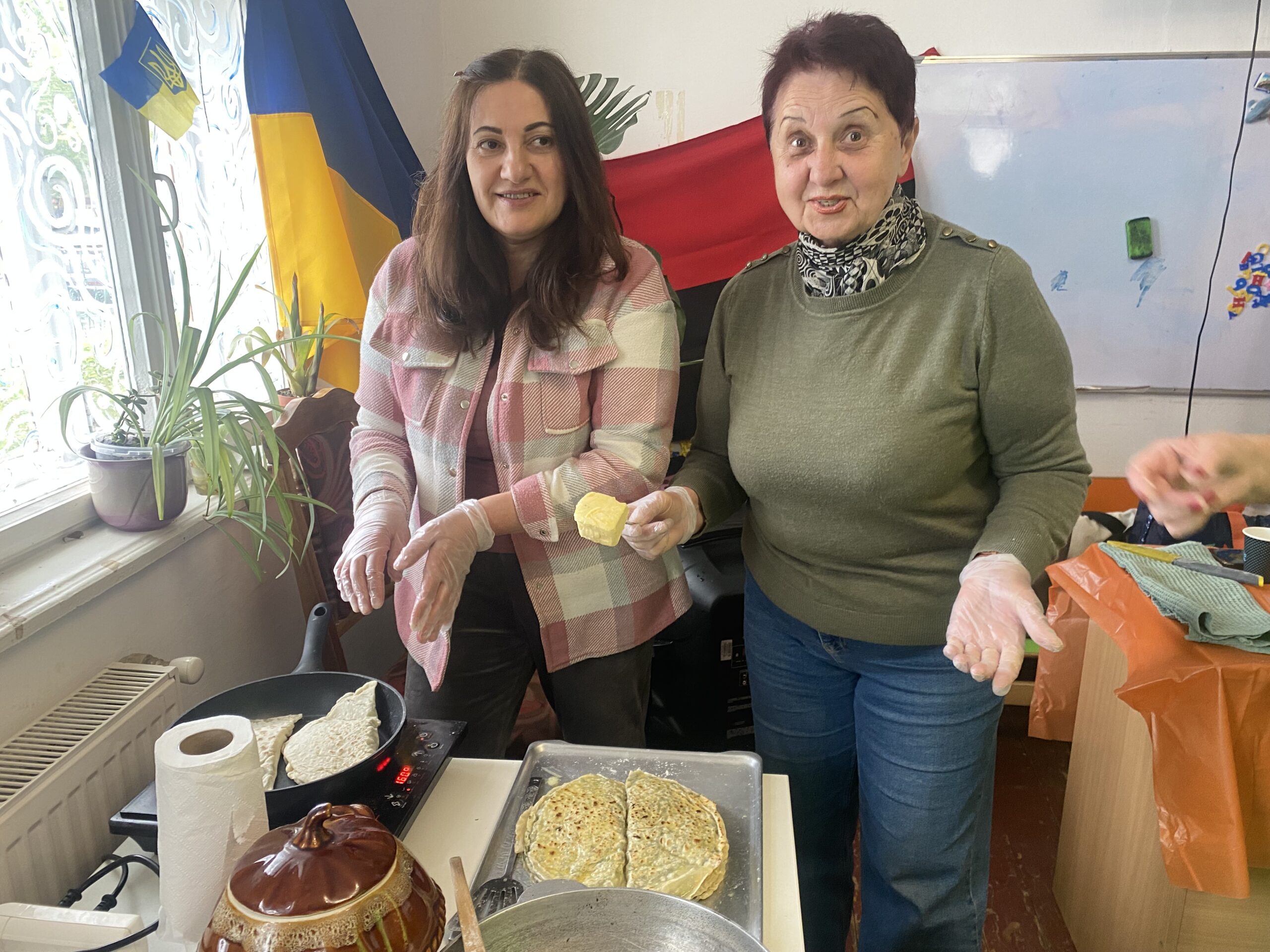 Згодом жінки ВПО дивували своїм креативним підходом до приготування чебуреків. Замість звичної м’ясної начинки, Теллі й Флора запропонували ароматні та несподівані чебуреки із зеленню.